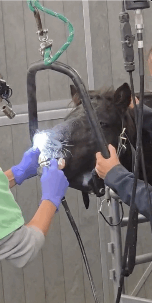 Wie auch bei uns Menschen werden auch regelmäßig unseren Pferden die Beißerchen poliert! Zahnbehandlungen bei Pferden – Warum sie so wichtig sind Auf unserem Lebenshof ist jedes Tier einzigartig – mit seiner ganz eigenen Geschichte, seinen Bedürfnissen und manchmal auch mit ganz speziellen Herausforderungen. Eine davon betrifft unsere liebe Thali, deren Weg zu uns und ihre regelmäßigen Zahnarztbesuche in der Tierklinik nicht nur bewegend, sondern auch lehrreich sind. Thalis Geschichte beginnt tragisch: Als junges Fohlen geriet sie auf einem Hof in einen Unfall mit einem Traktor. Dabei wurde ihr empfindlicher Kiefer verletzt. Vor allem ihre Zähne entwickelten sich seitdem nicht mehr normal – was bei einem Pferd, das auf eine funktionierende Kaumuskulatur und gesunde Zähne angewiesen ist, weitreichende Folgen hat. Gesunde Zähne sind für Pferde lebenswichtig. Als Pflanzenfresser kauen Pferde viele Stunden am Tag, um ihr Futter gründlich zu zerkleinern. Doch wie beim Menschen können auch bei Pferden Zahnprobleme entstehen – und die bleiben oft lange unbemerkt. Regelmäßige Zahnkontrollen und -behandlungen sind daher ein Muss! Pferde haben sogenannte „hypsodonte“ Zähne – sie wachsen ein Leben lang nach. Durch ungleichmäßige Abnutzung können scharfe Kanten, Haken oder Wellen entstehen, die das Kauen erschweren oder sogar Schmerzen verursachen. Mehrmals im Jahr begleiten wir Thali deshalb in eine spezialisierte Pferdeklinik, wo unter leichter Sedierung eine gründliche Zahnkontrolle und -pflege durchgeführt wird. Die Tierärzt:innen dort kennen sie schon gut und gehen mit viel Geduld und Erfahrung auf ihre besonderen Bedürfnisse ein. Dabei werden die Zähne mithilfe spezieller Instrumente korrigiert – Unebenheiten werden abgeschliffen, scharfe Kanten entfernt und das Gebiss so angepasst, dass Thali wieder schmerzfrei fressen kann. Der Eingriff dauert meist nicht lange, aber seine Wirkung ist enorm: Schon wenige Stunden später sieht man Thali wieder genüsslich ihr Heu kauen – entspannt, zufrieden und ganz sie selbst.