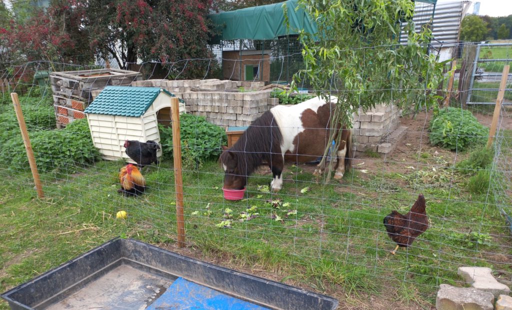 Wer unseren Lebenshof kennt, weiß: Hier leben Tiere nicht nur friedlich miteinander – sie überraschen uns auch immer wieder mit ihrer ganz eigenen Persönlichkeit. Und wenn es um kreative Eigeninitiative geht, ist unsere Cara ganz vorne mit dabei. Der Reiz des Verbotenen (Grüns) Cara ist ein kleines Pony mit einem noch größeren Appetit – vor allem auf frisches, grünes Gras. Dabei ist sie keineswegs wählerisch, aber eben auch nicht mit dem zufrieden, was „ihr“ eigentlich zugeteilt ist. Nein, Cara hat ihre ganz eigene Vorstellung von Gourmet-Weiden – und die liegen ausgerechnet im Hühnergehege. Regelmäßig, sobald die Tiere aus dem Paddock gelassen werden und mehr Bewegungsfreiheit genießen, nutzt Cara ihre Chance. Ein unachtsamer Moment, ein leicht geöffnetes Tor oder einfach ein beherzter Schubser und schwupps, steht sie mitten unter unseren Hühnern. Die zeigen sich inzwischen wenig beeindruckt von der unerwarteten Gesellschaft. Anfangs herrschte etwas Aufregung im Hühnergehege, doch mittlerweile scheint es fast, als würden sie Cara als Teil ihrer Gemeinschaft betrachten. Vielleicht schätzen sie auch einfach ihre ruhige Art – oder den Unterhaltungswert, wenn das Pony wieder mit vollem Körpereinsatz durchs Gehege manövriert. Was genau das Gras im Hühnerauslauf so unwiderstehlich für Cara macht, wissen wir nicht. Vielleicht schmeckt es ihr einfach besser, vielleicht ist es der Nervenkitzel – oder vielleicht hat sie einfach Freude an der kleinen Abwechslung im Alltag. Eines ist sicher: Cara weiß ganz genau, was sie will, und findet immer wieder Wege, sich ihren Wunsch zu erfüllen. Ihre kleinen „Ausflüge“ bleiben liebevolle Anekdoten, über die wir regelmäßig schmunzeln müssen – auch wenn sie uns ab und zu dazu bringen, das Gehege mal wieder „Cara-sicher“ zu machen. (Spoiler: Bis jetzt war sie immer einen Schritt voraus.) Kleine Persönlichkeit, große Wirkung Cara zeigt uns täglich, dass Tiere – egal ob groß oder klein – Charakter, Neugier und jede Menge Lebensfreude haben. Sie erinnert uns daran, dass ein Lebenshof mehr ist als nur ein Ort zum Leben: Es ist ein Ort, an dem Tiere ihre Eigenarten ausleben dürfen und wir sie so lieben, wie sie sind. Und wenn ihr uns das nächste Mal besucht und im Hühnergehege ein grasendes Pony entdeckt: Keine Sorge. Das ist nur Cara – auf ihrer ganz persönlichen Gourmet-Tour.